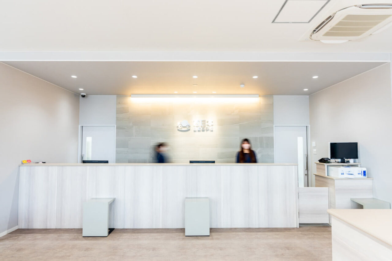 入校の受付やお客様対応、電話対応を中心に行っています。予約の受付や変更、スケジュールの確認なども大事な仕事のひとつです。